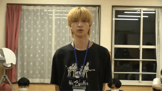 I’m Washi Ga Dockson. The first day, when I came to this audition, we found out that we’d be doing everything in pairs, which were decided by luck, and I ended up pairing with Terashima Yuuta. Neither of us had experience in dancing or singing, but we decided that we would pass the audition and debut in the WACK’s Mens group together. We told each other we would work hard, and support each other and pass together. I couldn’t sing or dance, or do anything, and whenever I felt like I wanted to go home, or I gave into my weaknesses, he was there by my side, and he told me everything would be okay. Thanks to that, I’m able to stay in the audition for three days, and I feel nothing but gratitude towards him. I happened to see all the kind and supporting messages from the people on twitter and the ones watching the live stream, and even though I was useless and couldn’t do anything, there were still people who said they liked what I was doing, even if it’s a little bit. Those comments also gave me the strenght to continue. And because I was able to come this far, without my determination to debut fading, I feel nothing but gratitude towards everyone around me. If if’s these people, then I would love to work with them. I also want to become someone who you would want to root for. Compared to the first day, I feel like I’ve become a bit more confident, I became able to talk and put myslef into action. There’s only half a day left, but I want to work harder and show myself in a good light; I’d be happy if you thought I changed compared to the first day. Even though i’ve felt painful feelings too, there are many people around me, and they gave me the strenght to keep on going. Thank you from the bottom of my heart. I’m Washi Ga Dockson.