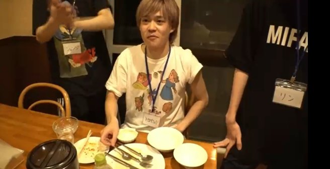 Dinner afterwards. Ryousei actaully managed to eat relatively quickly today! The other guys gave him a round of applause.